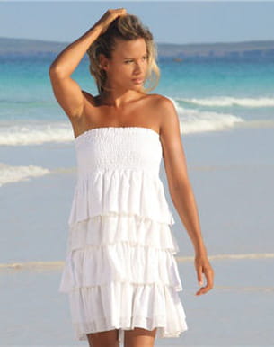 Adorable, cette petite robe signée Banana Moon est absolument parfaite pour faire la belle sur le sable. On aime sa forme bustier et les smocks au niveau de la poitrine, sans oublier bien sûr ses charmants volants pour se balader avec style. Collection printemps-été 2011
