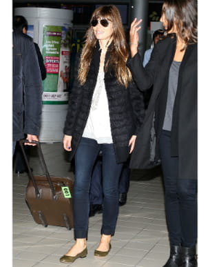 Avec quelques basiques bien choisis, la belle assure une nouvelle fois côté look. On craque particulièrement pour son slim brut qui s'adapte à tous les styles.