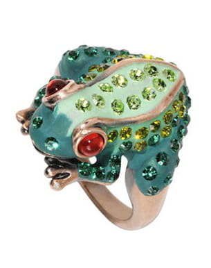 Tout en métal laqué rehaussé de strass, cette bague en forme de grenouille est sacrément originale. Le must : on l'a aperçue au doigt de Britney Spears herself !