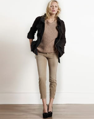 Ce modèle flirte avec le pantacourt pour dévoiler nos chevilles. Il adopte une coupe slim et surtout un coloris beige sable des plus chics, histoire de faire un clin d'œil à la saison estivale. Une façon de mettre en valeur nos jolies chaussures que l'on choisira avec soin, faut-il le préciser ? ! Collection automne-hiver 2011-2012