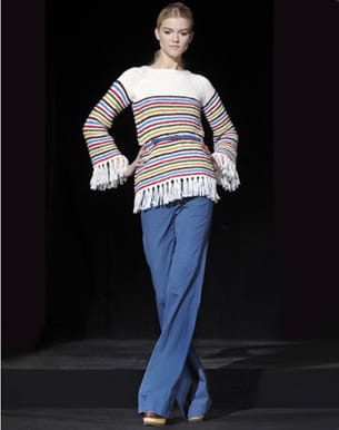 Ce denim ne se prend pas la tête et adopte un esprit résolument seventies. Très confortable, il affiche une forme très large que l'on associera à une blouse tout aussi vaporeuse ou alors au contraire à un top ou une chemise un peu cintrés pour le contraste. Quant au coloris, il semble hérité de la tendance color block de l'été et c'est parfait ! Collection automne-hiver 2011-2012
