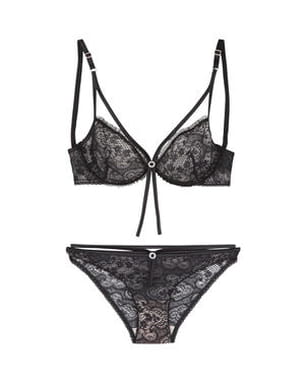La dentelle noire s'impose comme un classique mais aussi comme une arme de séduction redoutablement efficace ! Elle se voit ici magnifiée sur cet ensemble de lingerie ornée de quelques strass. On en connaît un qui va perdre la tête !