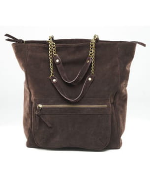 Le sac cabas reste un classique et un indispensable de notre garde-robe. En croûte de cuir velours, le voilà habillé pour l'hiver. Avec ses anses chaînes, il adopte un esprit très tendance. Et bien sûr, il reste pratique avec sa poche sur le devant et son format très sympa !Collection automne-hiver 2011-2012