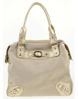Le sac beige et doré de Tissaia s'associe avec les chaussures et les lunettes. Il rompt le rouge de la tenue pour mieux la mettre en valeur. Simple et coquet, vous saurez le porter sans problème et en toutes circonstances.