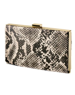 Pour un esprit un peu sauvage et mystérieux, l'imprimé python s'empare de nos accessoires, des chaussures aux sacs à main. A l'image de cette minaudière qui devrait envoûter plus d'une victime de nos charmes lors d'une soirée. On n'hésite pas à l'associer à du jean ou du noir et on le porte en journée comme en soirée. Bref, on ose ! Et on note aussi que le léopard n'a pas dit son dernier mot.