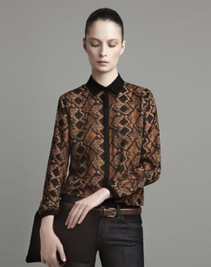 Le motif python est incontournable cette saison. Résultat, il s'imprime sur cette chemise dont le col noir lui assure une certaine élégance. A marier avec un jean ou un bas noir pour maîtriser cet imprimé reptilien.