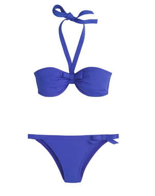 On s'y voit déjà... Sur la plage, au soleil, avec ce maillot de bain d'un bleu électrique qui ne fera que sublimer notre peau hâlée. On aime la forme du bandeau à nouer autour du cou, la culotte taille basse chic et confortable mais aussi et surtout le nœud surpiqué ton sur ton posé délicatement sur le haut comme sur le bas. Tout simplement irrésistible.