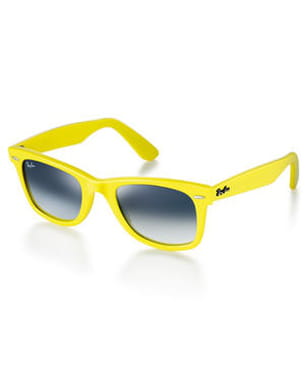 Vous souhaitez être au top du top cet été ? Adoptez sans plus attendre le modèle icône de Ray-Ban né en 1952, les lunettes Wayfarer. D'autant que cette saison, il adopte des couleurs aux allures rock et anticonformistes, à commencer par celui-ci tout jaune, couleur plus que jamais de rigueur pour l'été 2009. Avec ces solaires sur le nez, c'est sûr, vous aurez tout bon !
