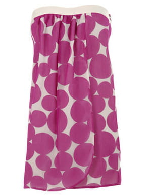 Légèreté et fluidité sont au rendez-vous pour cette robe signée du styliste américain Adam Lippes pour Mango. On retrouve la douceur de la soie des plus agréables à porter en été, une coupe bustier, un rose et des ronds festifs pour un look à la fois chic et décontracté.