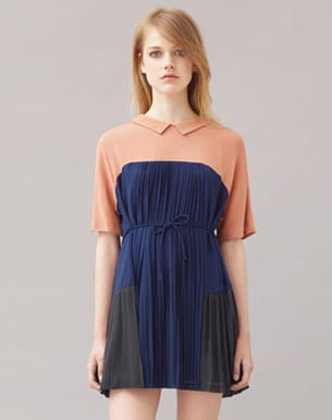 N'est-elle pas à croquer cette petite robe de Sandro ? Joli col chemise, coloris blush poudré, marine et gris, bas plissé et nœud à la taille : on dirait que tous les arguments mode sont ici réunis pour nous faire craquer... Et ça marche plutôt bien ! Collection automne-hiver 2011-2012