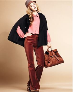 La marque de prêt-à-porter Monoprix toujours en phase avec les dernières tendances nous propose tout naturellement pour cet automne ce pantalon en velours marron. Sa coupe large et sa taille haute nous séduisent et surtout nous allongent les gambettes, quoi de mieux ? Collection automne-hiver 2011-2012