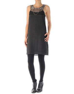 Un vrai bijou que cette robe courte ornée de perles brodées, qui rend tout collier totalement superflu. Avec sa longueur mi-cuisse, il dévoile de jolies gambettes pour un effet glamour à souhait !