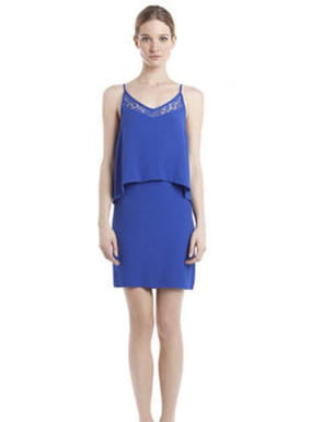 "Satuday night fever", c'est le moment de sortir et de faire la fête ! On oublie la robe noire le temps d'un soir et on se lance dans le grand bleu avec cette robe "Rayon" bleu roi de Sandro. La touche de dentelle sur le décolleté lui prodigue un léger air de lingerie séduisant et très délicat. Les yeux smoky, un Perfecto et des talons noirs, on ne vous arrivera pas à la cheville !