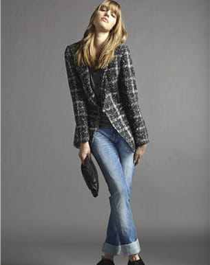 La marque Les Petites... a aussi son jean boyfriend ! On craque pour ce denim au bleu légèrement usé et à la coupe so trendy. Veste, pochette et bottines viendront le compléter à merveille pour un look au top cette saison.