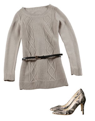 Le python s'impose comme l'une des grandes tendances de la saison. Alors on se plie à l'exercice mais avec style. Pour accompagner nos jolis escarpins, on mise sur la sobriété. Et pourquoi ne pas craquer sur l'une des pièces phares du dressing de l'hiver 2011-2012 avec un pull en maille torsadée ? Surtout que ce modèle ne manque pas de classe avec sa fine ceinture !
