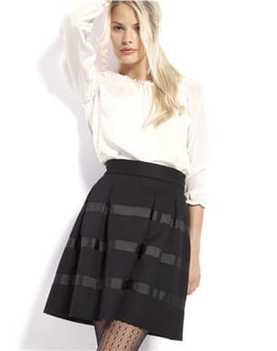 Toute belle, toute chaude, toute douce, cette jupe d'Ekyog ne peut que nous faire craquer. En 100 % laine, elle reste des plus élégantes avec ses jolis godets et ses rayures ton sur ton pour toujours plus de chic. Vendue ! Collection automne-hiver 2011-2012