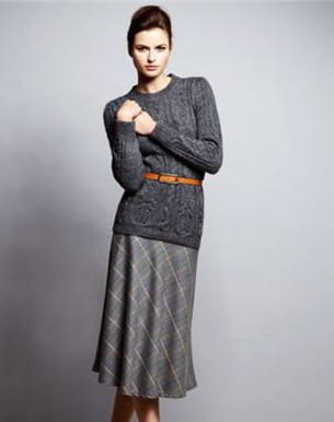 Plus que jamais dans l'air du temps, cette jupe évasée esprit rétro est un it pour l'automne-hiver 2011-2012. On n'hésite pas à la mixer avec un joli pull torsadé pour être au top de la tendance comme sur cette silhouette de Sinéquanone. Collection automne-hiver 2011-2012
