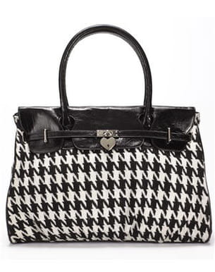 La marque anglaise nous en met encore plein la vue cette saison avec ses accessoires aux motifs et couleurs les plus variés. Place au pied-de-poule sur ce sac forme trapèze, avec fermoir petit cœur au menu. So cute !