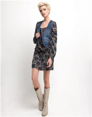 Les carreaux, on ne s'en lasse pas ! C'est pourquoi on craque pour cette petite robe de Naf Naf en coton, aussi facile qu'agréable à porter. On l'enfile avec un collant ou un legging en cas de mauvais temps, on l'agrémente d'une veste en jean sans manche de rigueur cette saison, on la complète d'une belle paire de bottes et nous voilà au top.