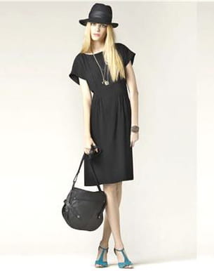 La petite robe noire, on y va les yeux fermés. Ba&sh propose cette saison ce ravissant modèle manches courtes en crêpe de viscose. Au programme : encolure bateau, jeu de transparence sur les épaules avec une partie en mousseline de soie et taille marquée par un empiècement. Que lui demander de plus, elle a déjà tout !