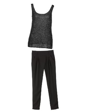 Pantalon noir de Camaïeu et top pailleté de Selected © SdP Zalando et Camaïeu