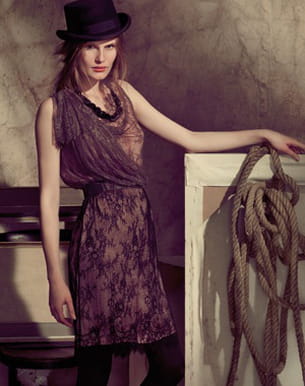 Originale, cette robe en dentelle de chez Hoss Intropia est LA robe à porter pour les fêtes. L'effet dentelle, le drapé sur l'épaule droite et la ceinture à la taille en font une valeur sûre. Une robe raffinée à s'offrir absolument ! Collection automne-hiver 2011-2012