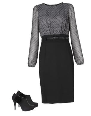 A porter au bureau comme en soirée, cette robe à l'esprit bi-matière s'adaptera à toutes les situations. On aime l'effet jupe crayon et sa fine ceinture noire. Et pour toutes celles qui suivent la tendance à la lettre, on l'associe avec des low boots à talon comme ce modèle orné d'une jolie fleur sur le côté de chez Bata. So chic !