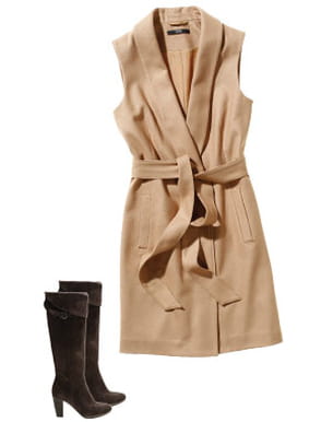 Robe ceinturée de C&A et bottes de Madeleine © SdP C&A et Madeleine