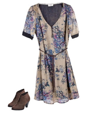 Pour toutes celles qui se sentent d'humeur poétique, on mise sur cette jolie robe en soie et coton avec ses imprimés fleurs signée Chipie. Et pour un look encore plus tendance, on chausse des boots en daim couleur chocolat. Craquant !