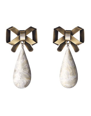 Définitivement chics et poétiques, ces boucles d'oreilles signées Dior devraient combler les plus éprises de raffinement. Avec leur forme goutte, en émail pétrole, et dotés de nœuds en métal doré, ces précieux bijoux se font aussi originaux. De vrais petits joyaux.