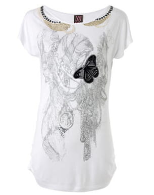 Avec son imprimé aux accents rock, le tee-shirt Mango apporte une pointe de fantaisie à une tenue classique. Confortable, il s'associe à merveille avec une jupe en jean, ainsi qu'une veste de tailleur. Le plus : un charmant papillon s'est endormi sur l'imprimé...