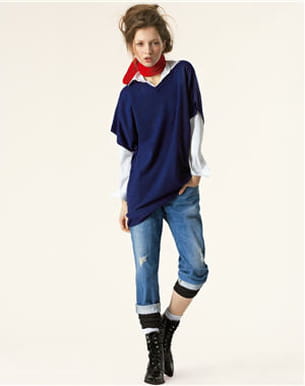 Voici une tenue décontractée et dans l'air du temps pour les fashionistas de l'automne-hiver 2009-2010. Pour cette saison, Uniqlo propose une large gamme de pulls en cachemire, à partir de 50 euros. On y découvre notamment ce modèle col V marine que l'on pourra aussi choisir en version col rond, col roulé, gilet mais aussi en rouge, jaune, orange... Il y a l'embarras du choix.