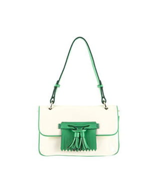 Un vent rétro souffle sur ce modèle signé Mellow Yellow. Avec sa petite languette verte à pompons, ce sac joue clairement la carte de l'originalité. Un modèle très chic à porter en journée comme en soirée ! Collection printemps-été 2012