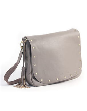 A la fois mode et pratique, ce sac gris clair est idéal pour vous suivre au quotidien.  Avec sa bordure cloutée et son pompon en cuir, il ne manque pas d'originalité. Et son joli coloris gris clair, lui donne un peu de caractère ! Collection printemps-été 2012
