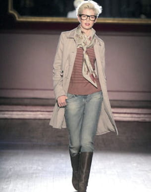 Vous avez quelques heures de libres, pourquoi ne pas aller voir une exposition ? Vous glissez votre jean préféré dans une paire de bottes cavalières et choisissez un pull à rayures, le tout associé à un joli trench beige. Le plus : le petit foulard que l'on noue de façon lâche, ainsi qu'une paire de lunettes vintage.