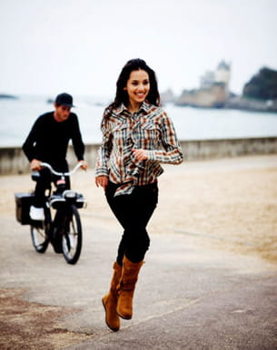 Il vous l'avait promis : cet après midi vous filez au bord de la mer. Chaussée de vos bottes plates camel, vous êtes prête à gambader. Pour le haut, vous arrêtez votre choix sur une chemise manches longues à carreaux, que vous associez à un pantalon slim noir. Une tenue idéale pour un après-midi radieux !