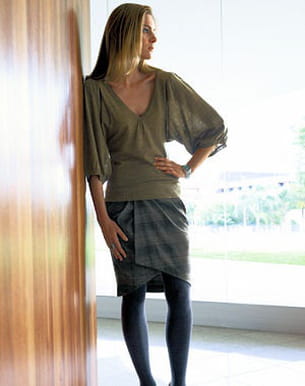 Jeu de volume et de ligne avec cette jupe droite qui s'inscrit dans la tendance avec son motif écossais. Elle joue sur les drapés avec une coupe asymétrique porte-feuille. Discrète mais originale, elle saura s'imposer dans votre garde-robe de l'hiver.