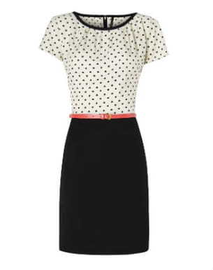 On se laisse complètement séduire par cette jolie robe aux accents rétro. Son haut se pare de petits coeurs noirs pour un effet trompe-l'oeil. On aime aussi la jolie ceinture corail qui vient délicatement souligner la taille. Si avec ça, il ne fond pas !