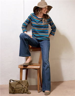 La coupe flare a toujours le vent en poupe. Et ce modèle d'inspiration vintage ne va pas nous dire le contraire. Sa coupe large vient en effet nous dessiner une silhouette très seventies. On l'assortit d'un haut cintré ou encore et de chaussures à talons pour un look très féminin.