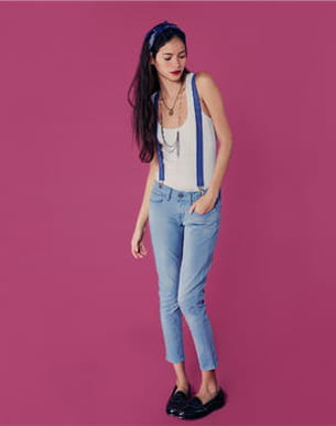 On affiche un esprit masculin-féminin avec ce jean 7/8e. Son coloris bleu pastel et sa forme slim lui confèrent un style parfait pour la belle saison. On pique aussi l'idée des bretelles pour jouer sans contrefaçon au garçon.