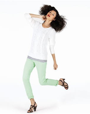 Pour un look résolument romantique, on adopte sans plus attendre ce pantalon délicat coloris  vert amande de chez Tissaia. Très tendance, il se porte retroussé dans le bas. Pour changer du blue jeans ! Collection printemps-été 2012
