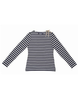 La marinière se réinvente chaque saison. Chez Petit Bateau, elle se pare d'un laçage sur l'épaule pour une petite touche originale. On la porte dès maintenant avec un jean ou un pantalon rouge et avec un short dès les beaux jours. IN.DIS.PEN.SABLE !