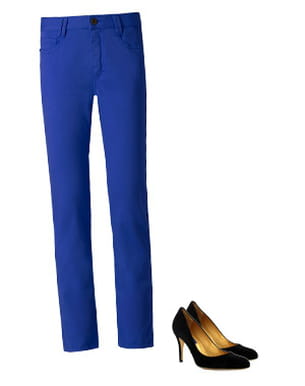 Le jean coloré est une des tendances phares de la saison à laquelle vous n'échapperez pas. Alors enfilez ce modèle bleu électrique de Gérard Darel.  Et pour un look encore plus rock and chic, ces escarpins en velours noirs d'Atelier Voisin seront parfaits, pour briller au bureau comme en soirée. Collection printemps-été 2012