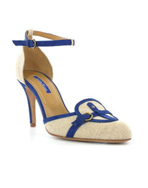 Cette paire d'escarpins Atelier Voisin est idéale pour vous rendre au travail. Vous apprécierez le contraste entre la toile naturelle et le bleu électrique des lanières et bordures. De quoi être élégante sans en faire de trop !