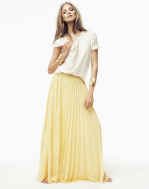 On joue la carte hippy chic avec ce long jupon au délicat coloris jaune. On le porte avec un basique tel que le tee-shirt pour un look simple mais parfaitement maîtrisé. Carte blanche également aux bijoux pour parfaire son style.