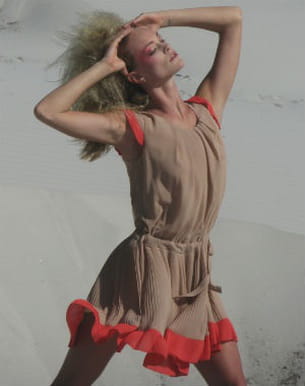 La tendance est au tissu plissé ou gaufré et cette robe signée Deby Debo vient parfaitement l'illustrer. Elle associe le beige et le corail pour un duo de couleurs parfait pour les beaux jours. Ceinturée à la taille, elle prend des airs antiques tout en faisant preuve de modernité.