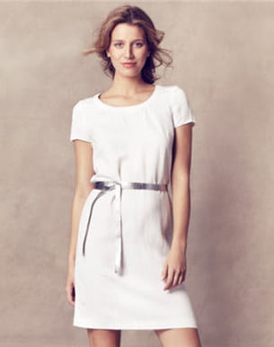 Le chic en toute simplicité semble être le credo de cette robe Lola. Droite, à col rond et immaculé, ce modèle convient à toutes les morphologies. Un indémodable !