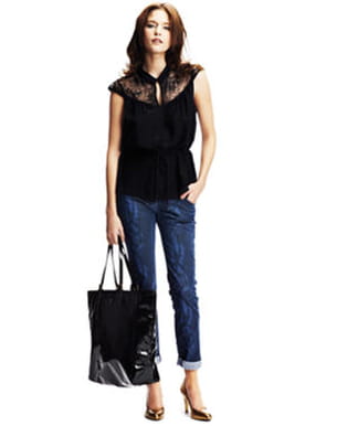 Une soirée entre amis se profile à l'horizon ? L'ensemble denim-chemisier sera votre allié. Associé à un jean slim à imprimé python, le top opte pour la soie et la dentelle pour un look rock'n chic. N'oubliez pas de l'accessoiriser avec un cabas en cuir noir XXL pour y fourrer trousse à maquillage, foulard et cardigan.