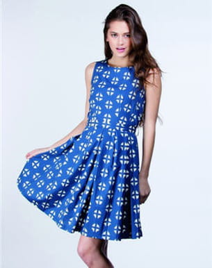 Envie d'un petit look ethnique-chic ? On fait confiance à La Fée Maraboutée ! La griffe française nous propose cette robe bleue imprimée de croix blanches. On aime sa forme évasée qui mettra en valeur nos courbes féminines. Et on n'hésite pas à l'accessoiriser d'une paire de sandales compensées et d'une pochette beige pour une silhouette des plus élégantes. On craque totalement !