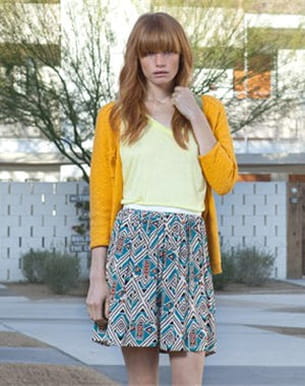 On retrouve tout le confort et la qualité des matières chez American Vintage avec entre autres cette jupe tout en fluidité. On aime aussi son imprimé d'ailleurs qui nous assure un look à la fois original et stylé et même citadin avec un petit vent d'exotisme. Done ! Collection printemps-été 2012